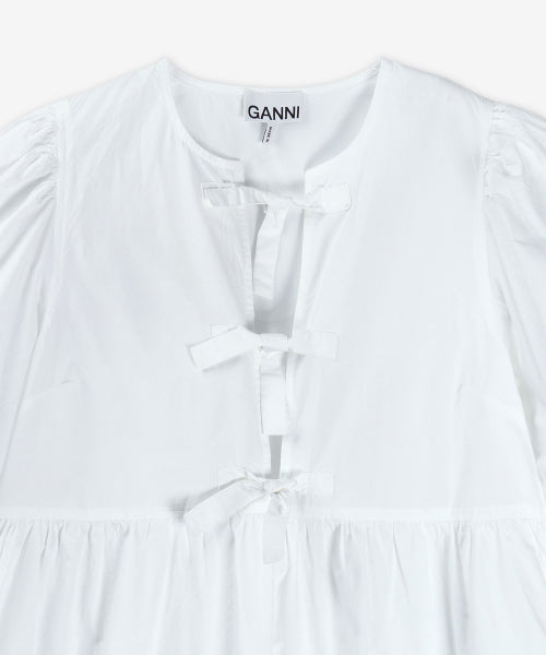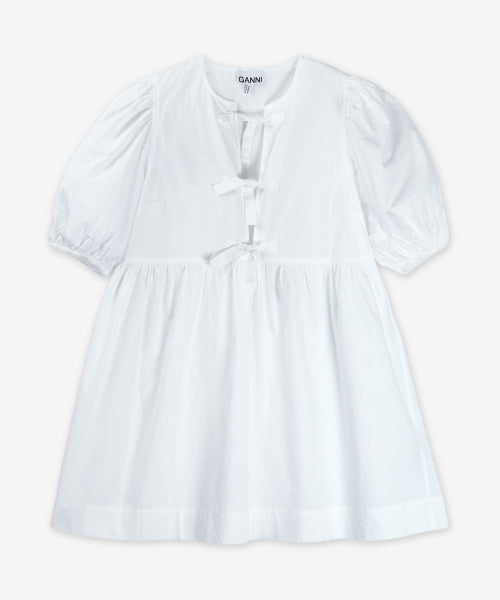미니 코튼 포플린 타이 스트링 원피스 - 화이트 / F9170151