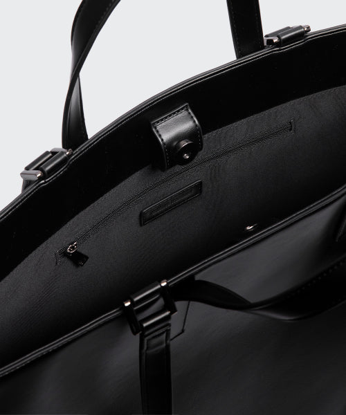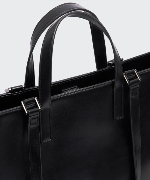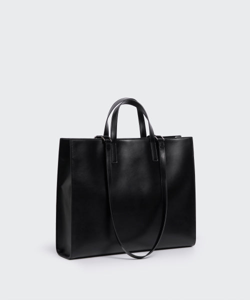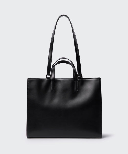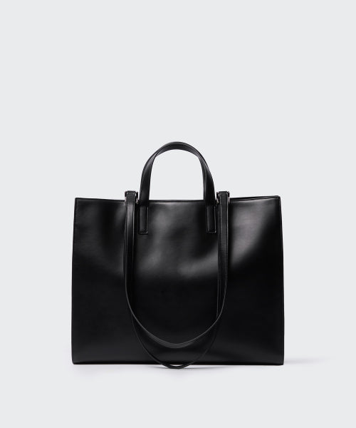 신세틱 레더 렉탱글 숄더 토트 백_라지 [블랙]