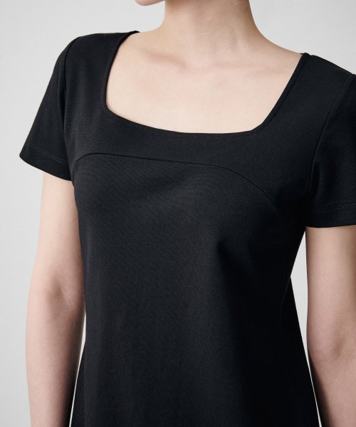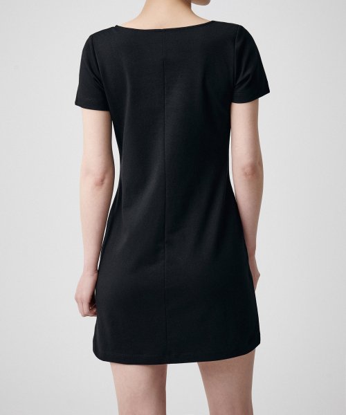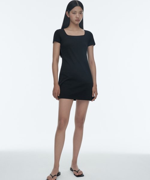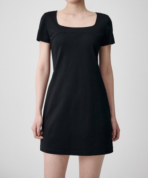 우먼즈 스퀘어 넥 저지 미니 드레스 [블랙]