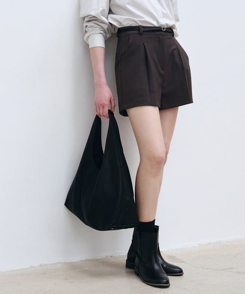 클래식 핸들 레더 호보백 - 블랙