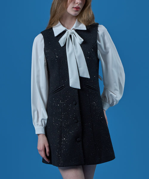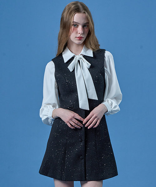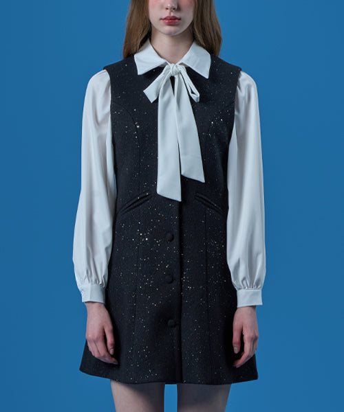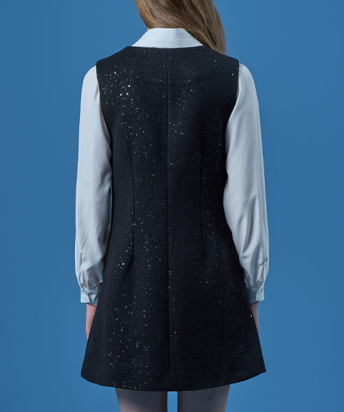 트위드 스팽글 레이어드 버튼 미니원피스 [BLACK] KCL.